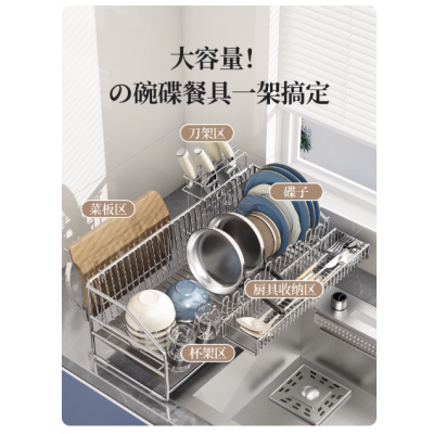 不锈钢厨房碗碟收纳架台面多功能碗架碗盘筷子带托盘沥水架收纳筐